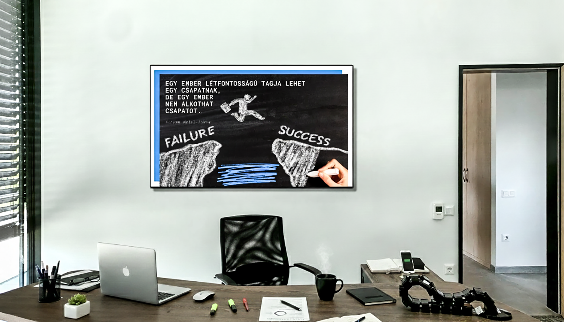 A falak is dolgozhatnának a cégért, vizuális kommunikációval, inspiráló térdekorációkkal támogatva a vállalkozás sikerét.