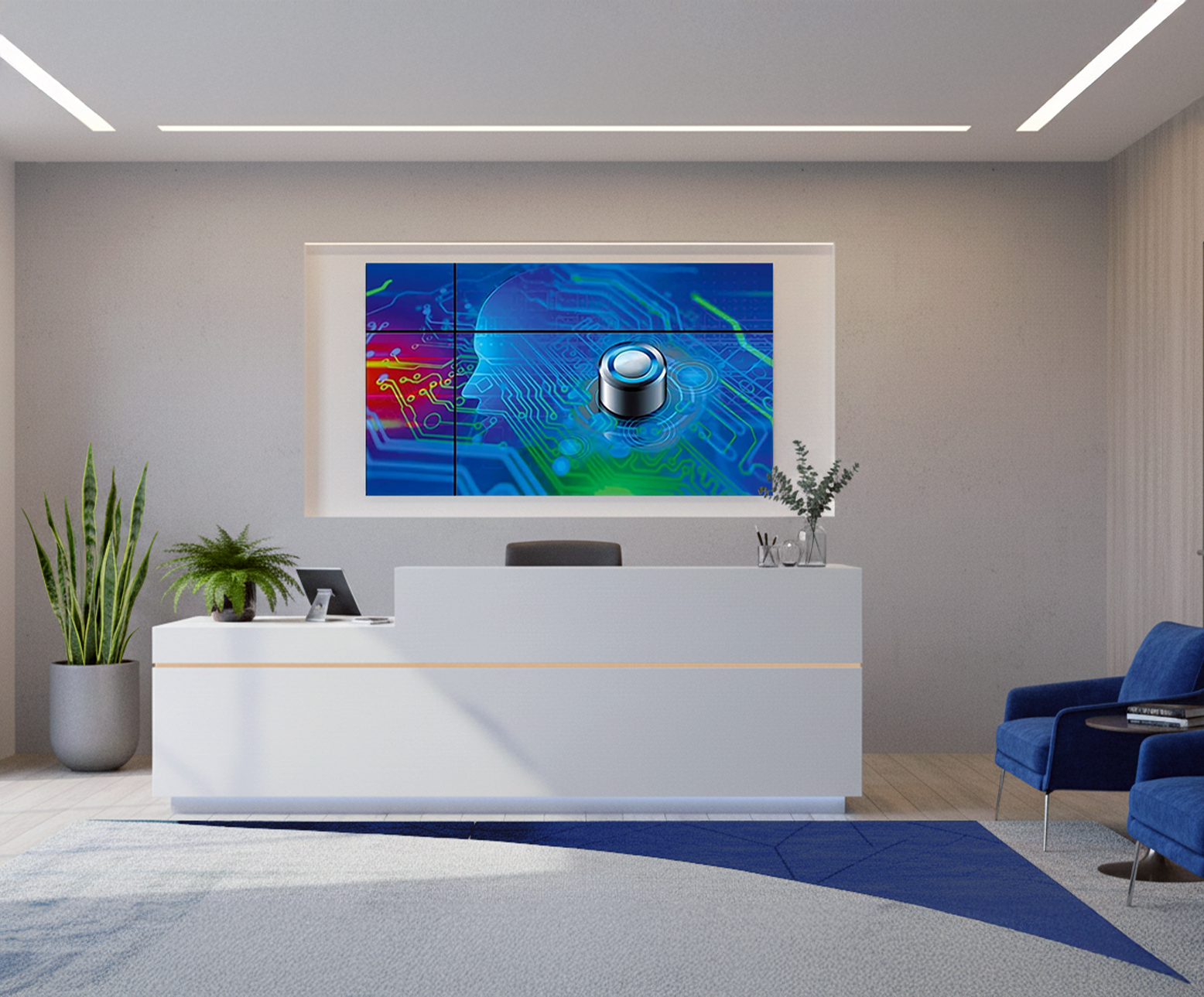 Egy tudatosan megtervezett fal minden térben egyértelműen közvetíti a cég tevékenységét, szakmai felkészültségét és jövőképét, erősítve a vállalati arculatot és az üzleti üzenetet.