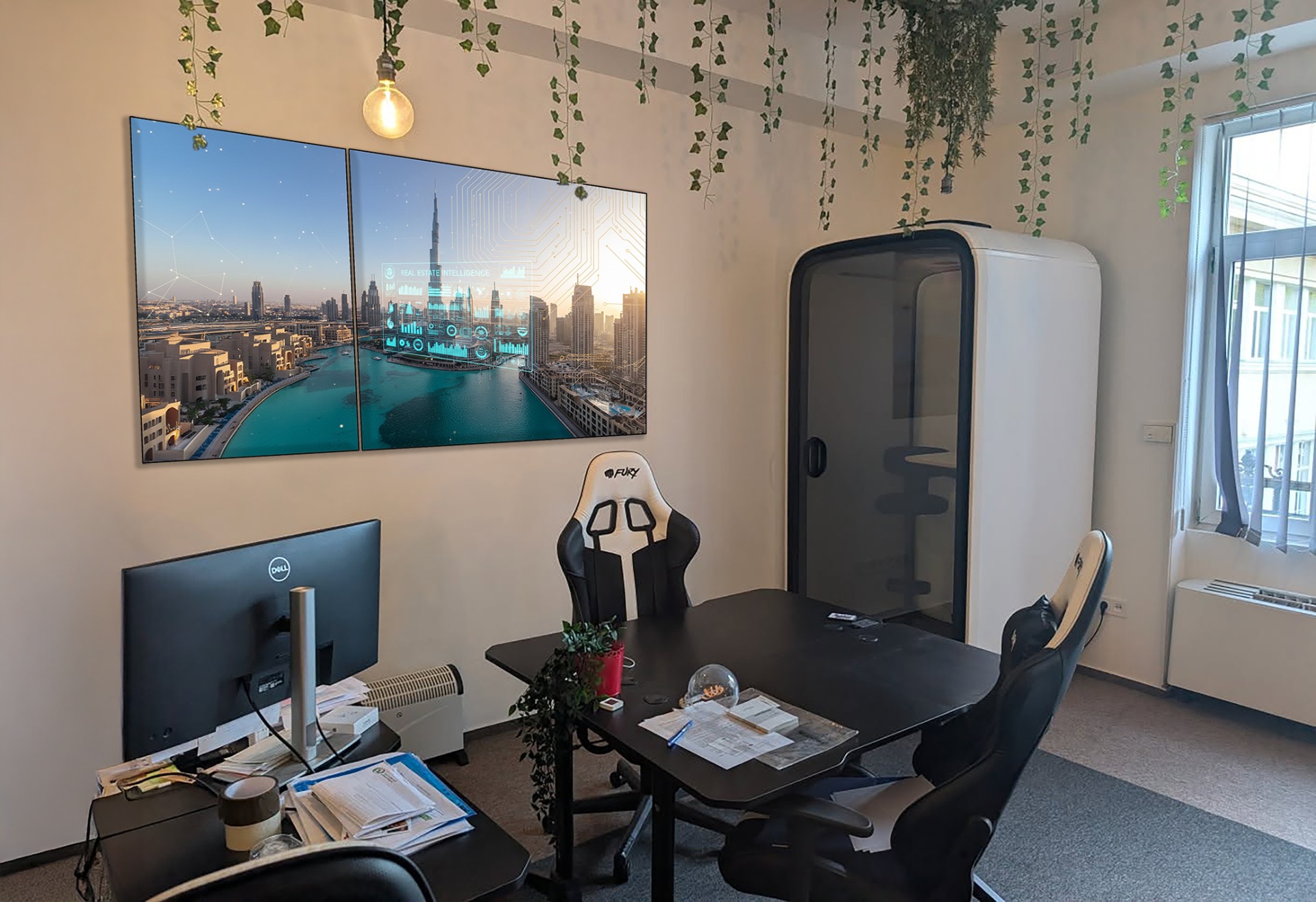 Stratégiai pozicionálás egyedi selyem-fotógrafikával ( storytelling mesélő térdekorációk ) – olyan professzionális iroda kialakítása, amely már az első pillantásra bizalmat ébreszt, megragadja a figyelmet, vizuálisan emlékezetessé teszi a találkozót, és erősíti a tárgyalások sikeres, pozitív kimenetelét.